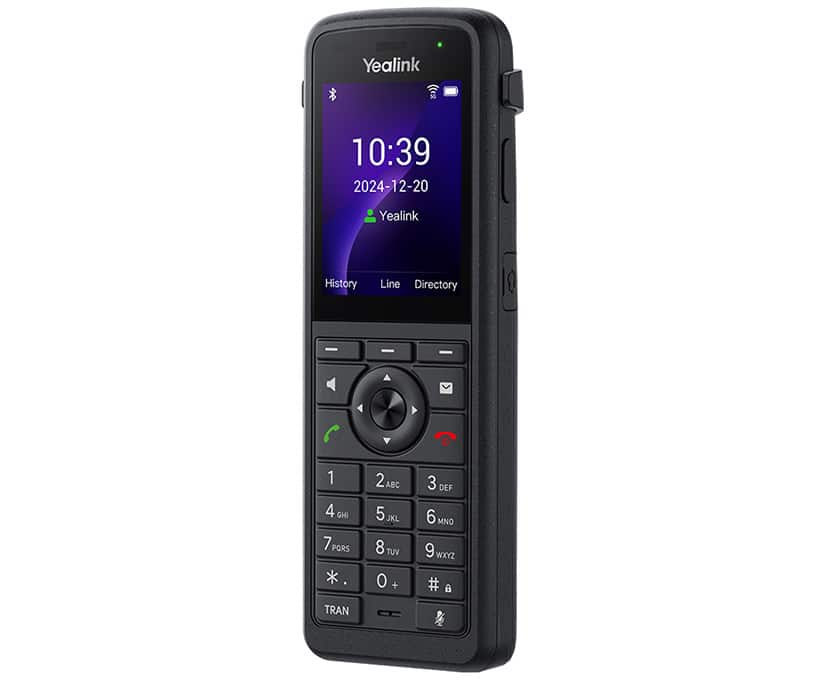 The AX86R is an enterprise portable Wi-Fi IP color screen phone that meets wireless communication needs. The AX86R meets the IP67 protection standard, effectively providing waterproof, dustproof, and 1.8-meter drop-proof capabilities. The AX86R supports registering up to 4 SIP accounts, 5-way local conferencing, and features a 2.4-inch color display. It integrates Yealink’s Optima HD Audio and Smart Noise Cancellation technology to deliver exceptional audio quality and clear voice communication. It is equipped with a built-in Bluetooth 5.0 module and a dual-band 2.4G/5G Wi-Fi 6 module, combined with advanced seamless roaming technology, allowing you to stay ahead in the ever-evolving wireless era. In addition, AX86R is equipped with a 3100mAh battery, providing a talk time of 13 hours and a standby time of 300 hours. It is widely used in various wireless scenarios such as SMEs, offices, warehouses, supermarkets, and hotels.